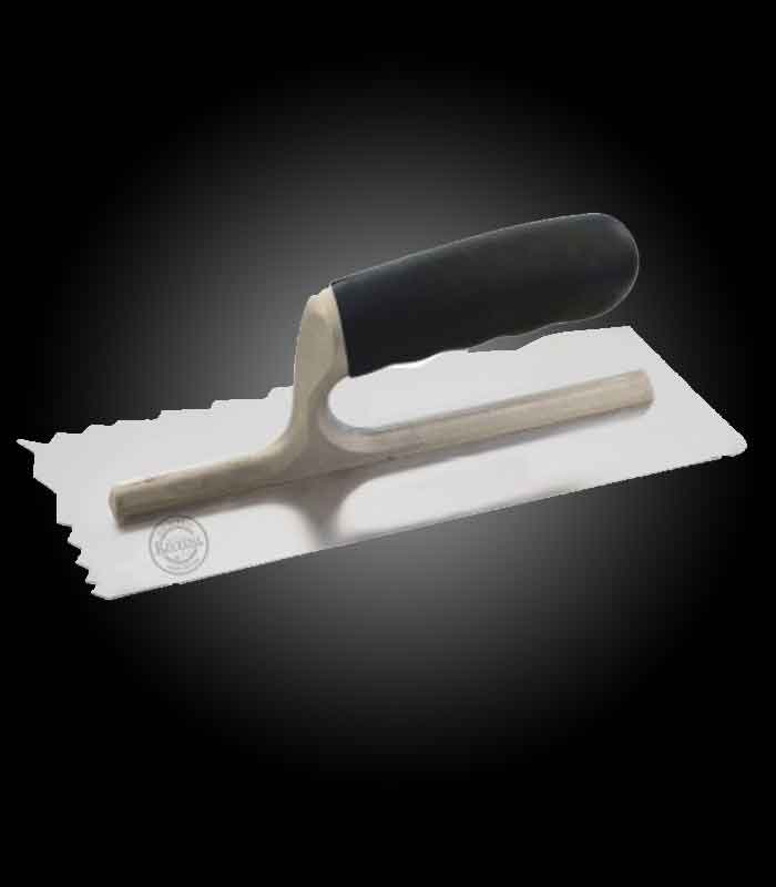 Total Black Onda is an elegantly designed trowel, characterized by wave-shaped blade, ideal for creating textured effects and smooth finishes in plaster applications.